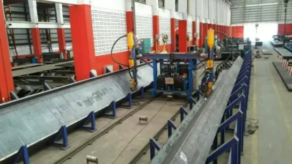 The working principle of the double column welding machine is similar with gantry-type welding machine. The difference is that, for gantry welding machine, the welding is accomplished between two rails; for double column welding machine, the welding is accomplished outside the rails. It can weld the H-beam which is higher than 1.5m, no limit for beam height. When it is single arc single wire welding , the welding power can be settled on the machine trolley, while it is double arc double wire, there are total 4 welding source , cannot be settled on the trolley.