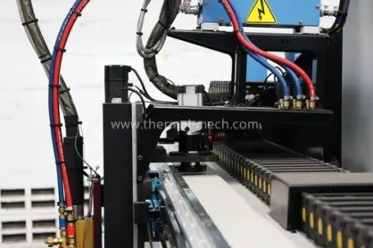 Model Thundercut 4000 แรงดันไฟฟ้า 220 V / Single Phase / 50 Hz. ความกว้างของราง 4,000 mm. ความกว้างตัดจริง 3,600 mm. ความยาวตัดจริง 6,100 mm. ความเร็วเคลื่อนที่สูงสุด 8,000 mm./min. ความเร็วการตัดสูงสุด 6,000 mm./min ระบบขับเคลื่อนตามแนวยาว Rack & Pinion ระบบขับเคลื่อนตามแนวขวาง Rack & Pinion จำนวนชุดขับเคลื่อนตามแนวยาว Dual Drive ระบบรางตามแนวยาว Industry Grade I Rail ระบบรางตามแนวขวาง Double Linear Guide ความยาวรางทั้งหมด 4,585 mm, ความกว้างทั้งหมด 4,230 mm. ความสูงทั้งหมด 1,577 mm. น้ำหนัก (Weight) 1,700 kg. - Gallery