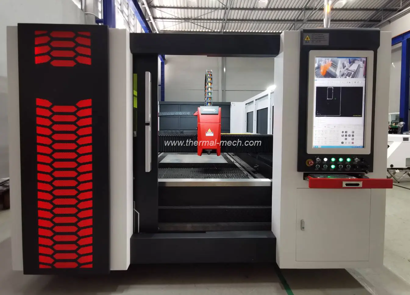 Brand Thermatech Laser Source Fiber Laser Wave Length 1,070 nm Laser Power 1,000-12,000 watt Cutting Area 1,500-3,000 mm.