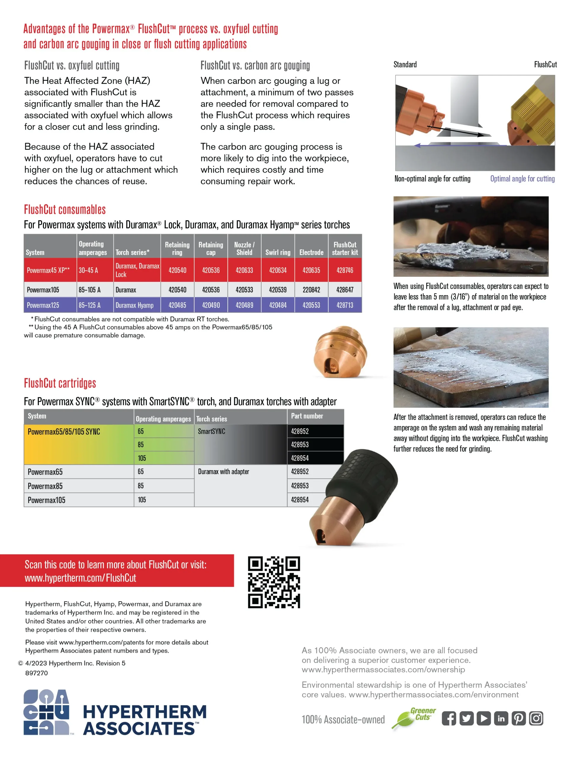- เลือกตามลักษณะการตัด เช่น งานตัดตรงทั่วไป: ใช้ชุด Standard Consumables งานตัดเอียง: ต้องใช้ Extreme Bevel ชุดเฉพาะ งานตัดล้างหน้าผิว: ใช้ชุด FlushCut