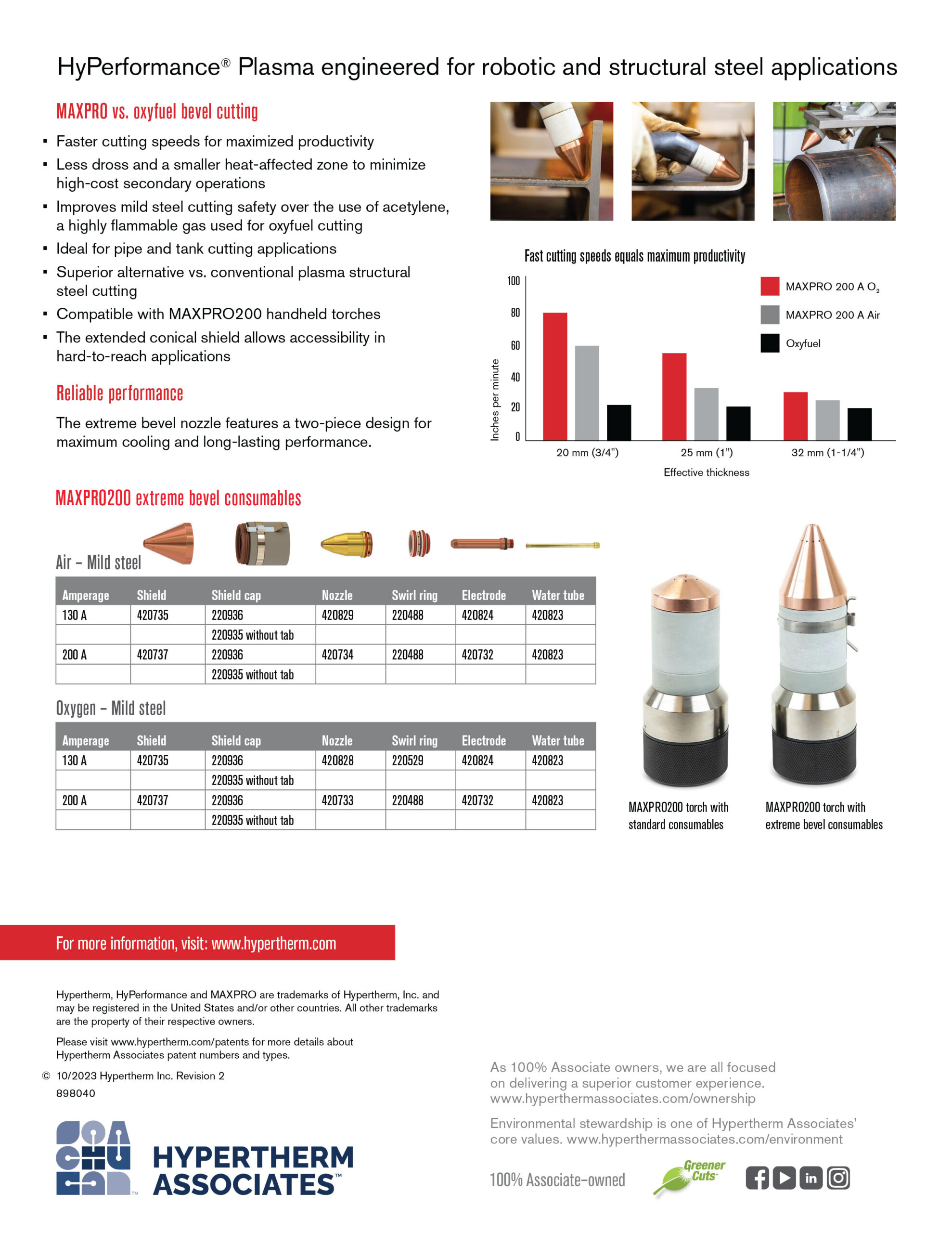 - Conical Flow™: เพิ่มความหนาแน่นของพลังงานอาร์ก เพื่อคุณภาพการตัดที่คมชัด