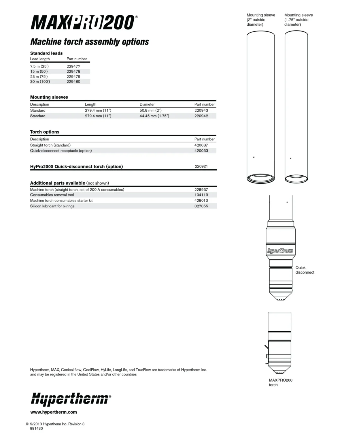 เทคโนโลยีและรุ่นอะไหล่เครื่องตัดพลาสม่า Hypertherm