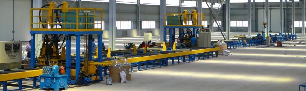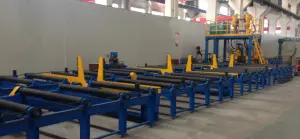 ไลน์ผลิตพิเศษที่ใช้ในการประกอบและเชื่อม H-beam เมื่อนำมาเทียบกับไลน์ประกอบแนวตั้งปกติ ข้อดีคือการเพิ่มผลผลิตสูง ชิ้นงานเปลี่ยนรูปน้อย และเหมาะสำหรับผลิต H-beam ขนาดเบา ไลน์การผลิตนี้ประกอบด้วย เครื่องประกอบ เครื่องเชื่อมด้านหน้า เครื่องพลิกกลับ เครื่องเชื่อมด้านหลัง และชุดลูกกลิ้งลำเลียง ไลน์ผลิตนี้สามารถ ประกอบ เชื่อม พลิกกลับ และลำเลียง H-beam ตามกระบวนการผลิตได้