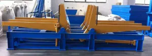 เครื่องพลิกกลับชิ้นงานคู่90° มีสามชิ้นและถูกควบคุมร่วมกันโดยสถานีไฮดรอลิคและตู้ควบคุมไฟฟ้า เครื่องนี้จะใช้ในพลิกกลับ H-beam 180 ° หลังจากที่เชื่อมด้านบนเสร็จแล้ว เพื่อนำไปเชื่อมด้านหลังต่อไป