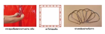 • ผลิตจาก PVC หนา หนา 0.38-0.4 มม. ขนาด 180×180 ซม. หรือ สั่งตามขนาดที่ต้องการ