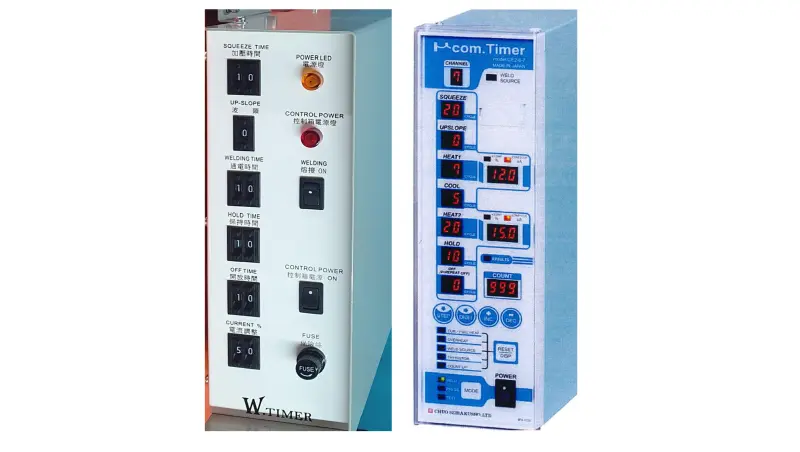 - แบบไมโครคอนโทรลเลอร์: เป็นระบบสัมผัส, มี 7 โปรแกรมใช้งาน, มีกระบวนการเชื่อมสองขั้นตอนและการชดเชยกระแสเชื่อม