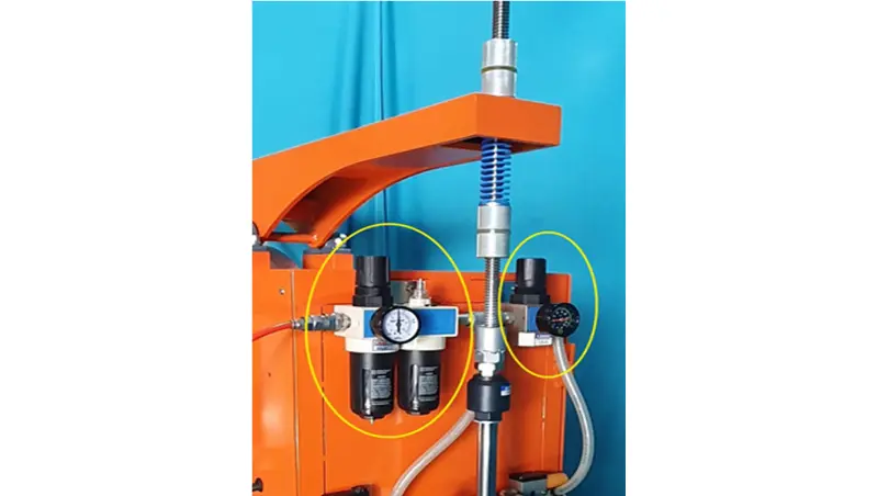 เครื่องเชื่อมตัวนี้ใช้กระบอกลมอัดแบบสองจังหวะ