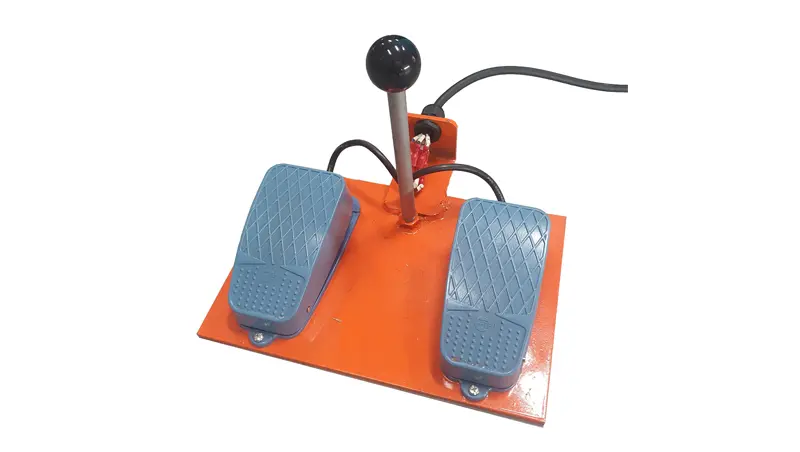 สวิตช์เท้าเหยียบแบบนิวเมติก มีสวิตช์เหยียบสองตัวสำหรับควบคุมการเปิดแขนและควบคุมการเชื่อมสปอต
